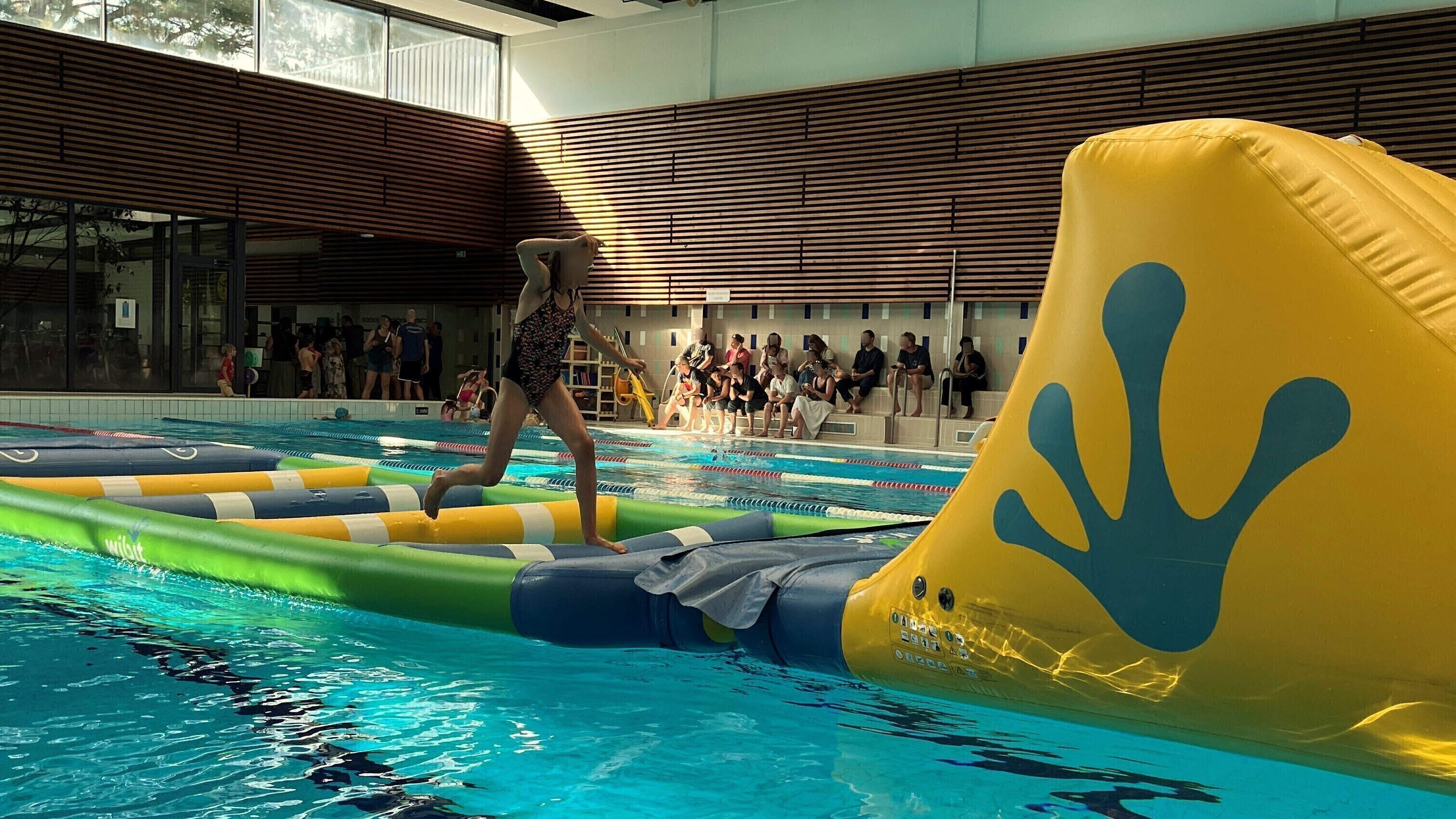 Envie de fun et de défis aquatiques ? La structure gonflable vous attend dans le grand bassin ! Ouverte aux enfants sachant nager, elle offre un moment ludique pour s’amuser en toute sécurité.