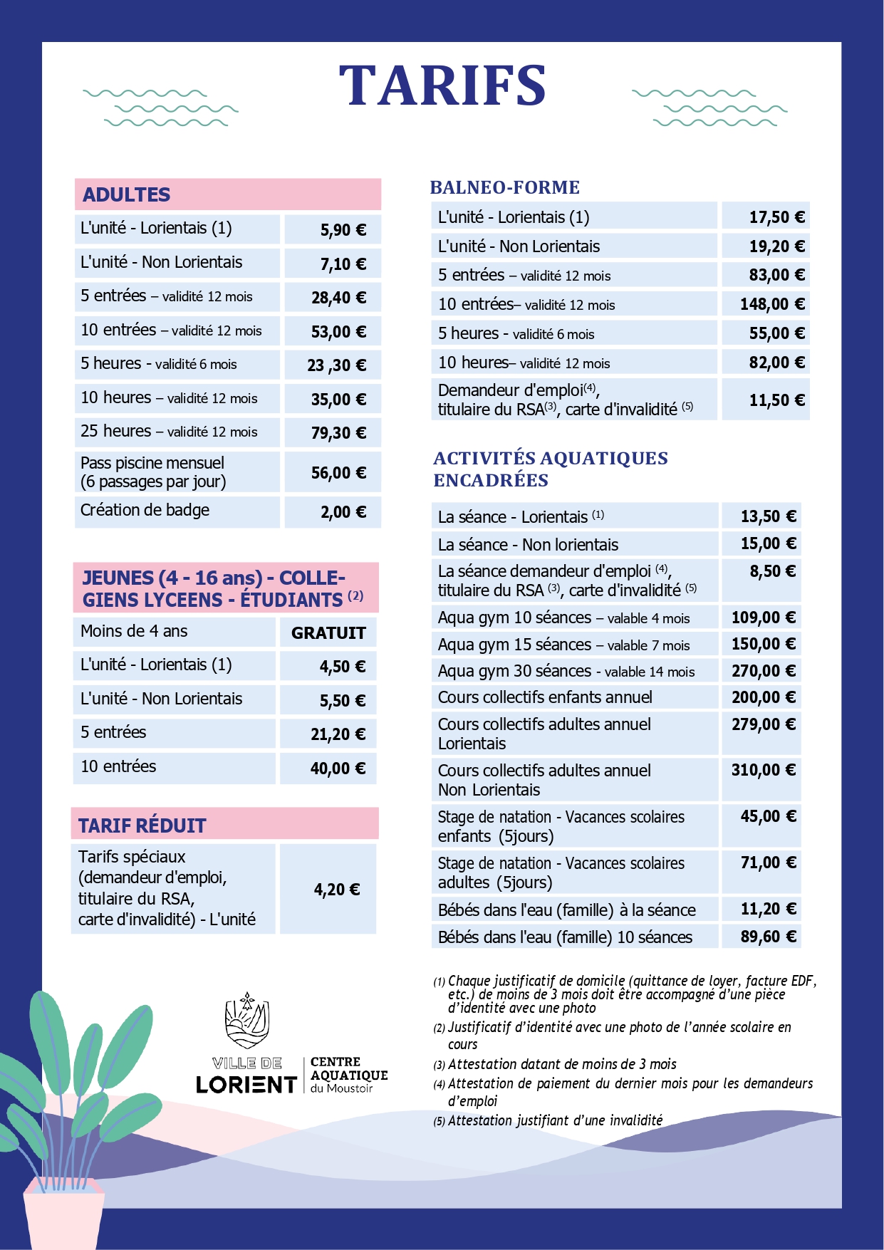 Attention, aucun remboursement ne sera effectué (tickets individuels, abonnements, cours collectifs, aquagym, bébés dans l'eau, etc)